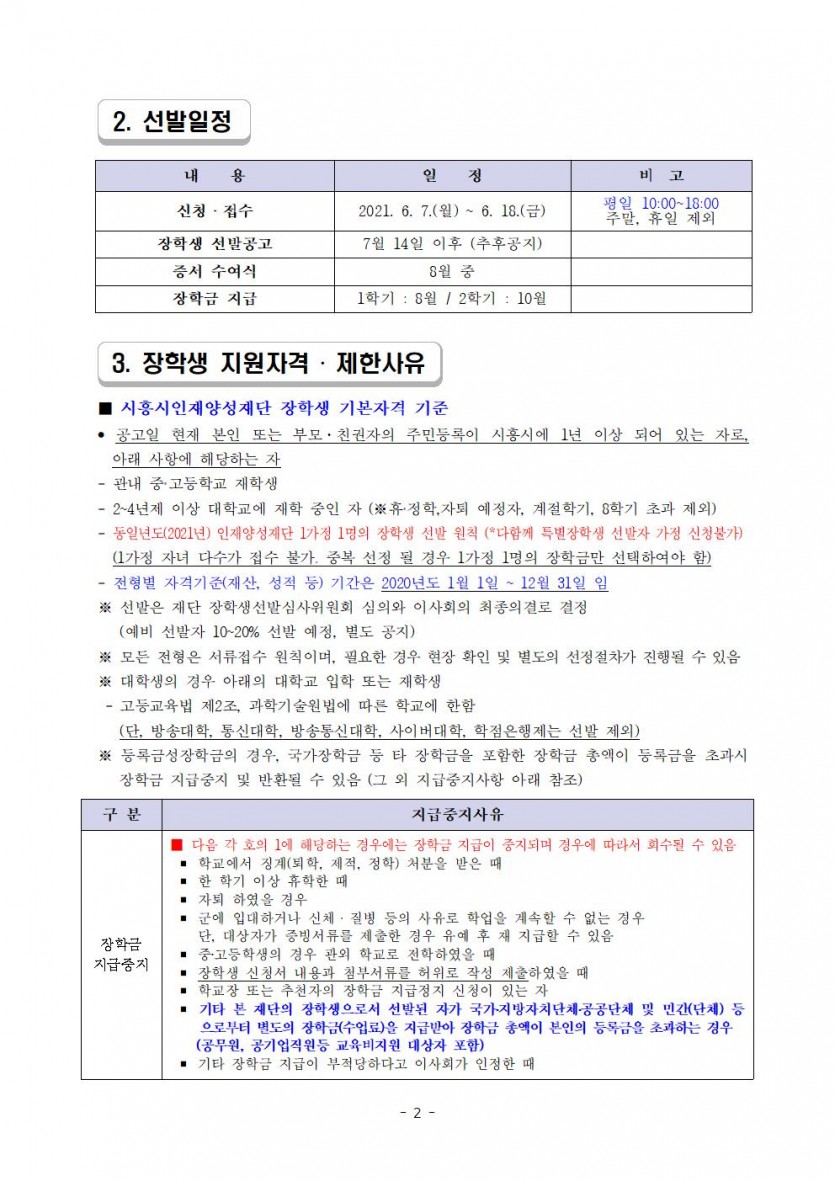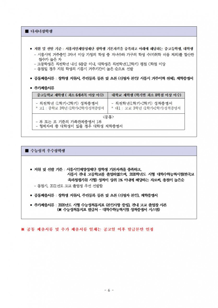 시흥시 교육발전과 인재양성을 위한 장학금입니다. |
