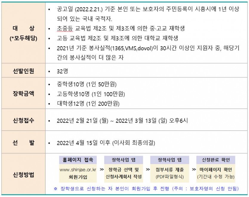 지역에서 꾸준히 선행을 실천한 공익인재를 응원하기 위한 장학금입니다. |