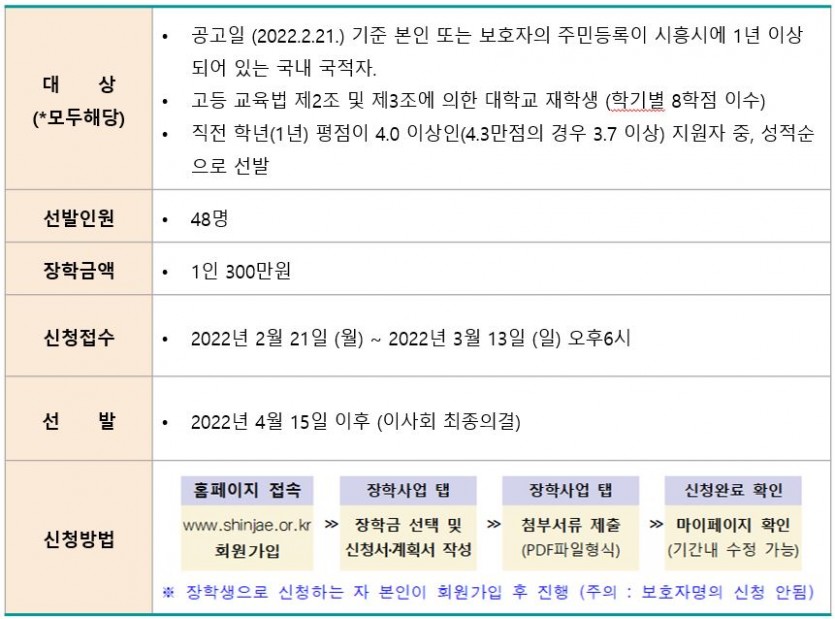 우수인재장학생(학업성적-대학생)