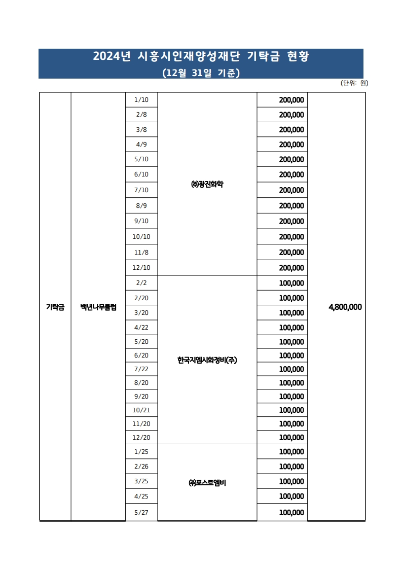 2024년 장학기금 적립 현황(12월 31일 기준)