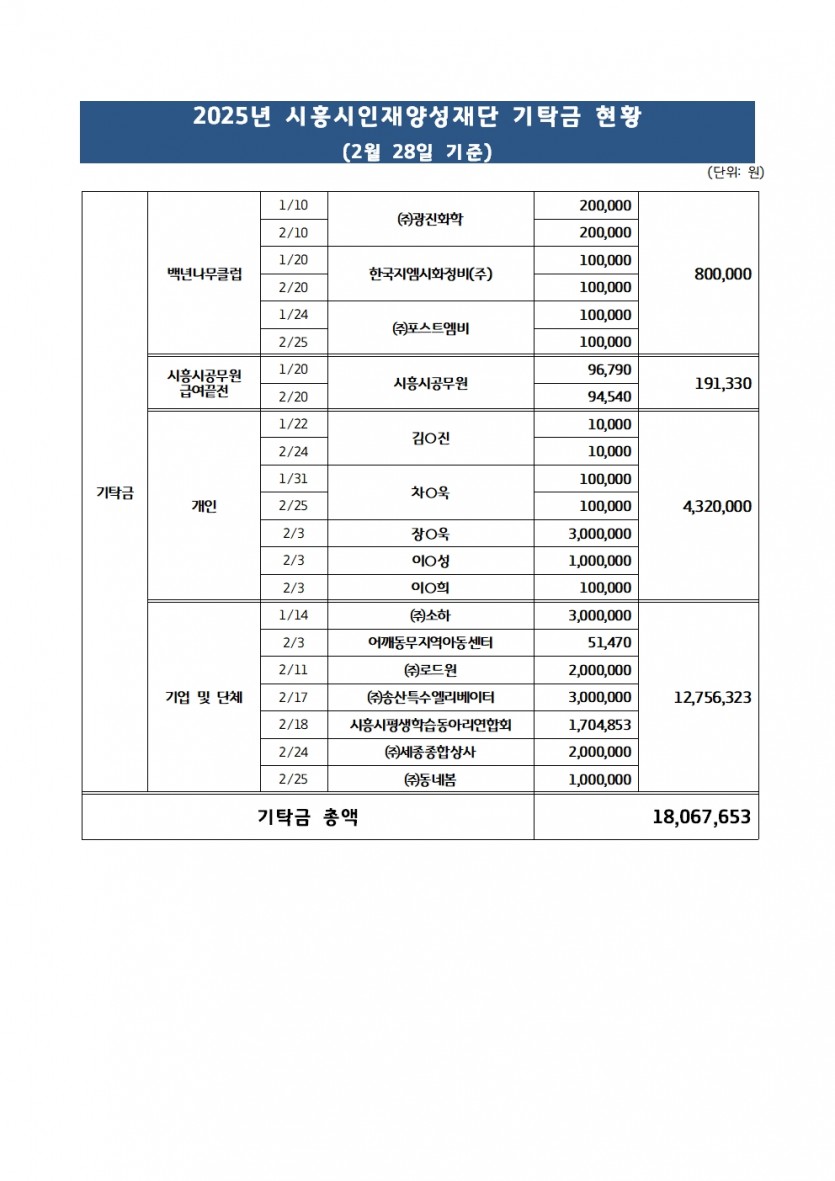 2024년 장학기금 적립 현황(12월 31일 기준)