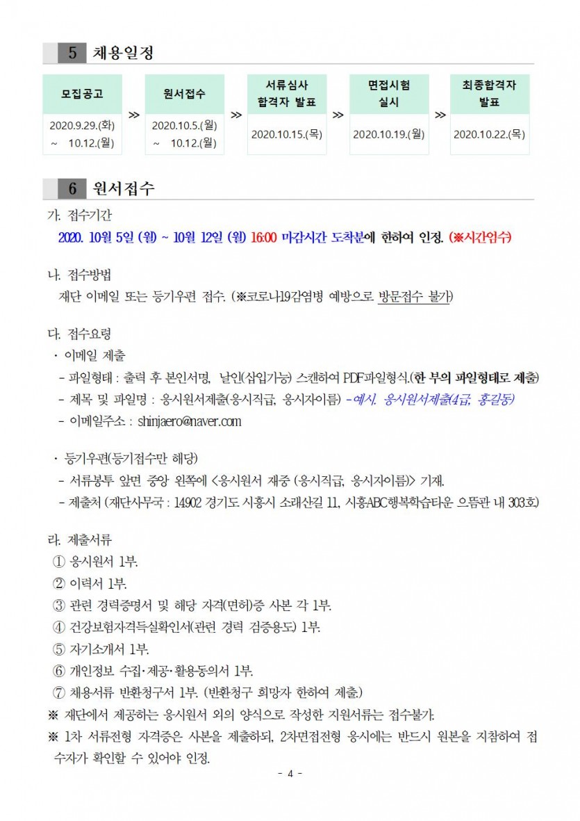 2020년도 제2회 직원채용 공고(접수방법, 작서 서식 및 요령 등).hwp