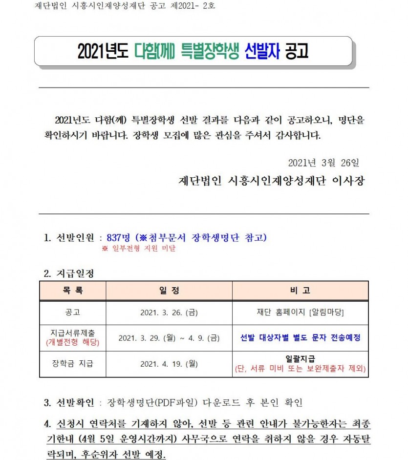 공고 제2021-2호. 2021년 다함(께) 특별장학생 선발자 공고.hwp