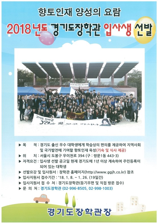 [공고] 2018년도 경기도장학관 입사생 모집 안내