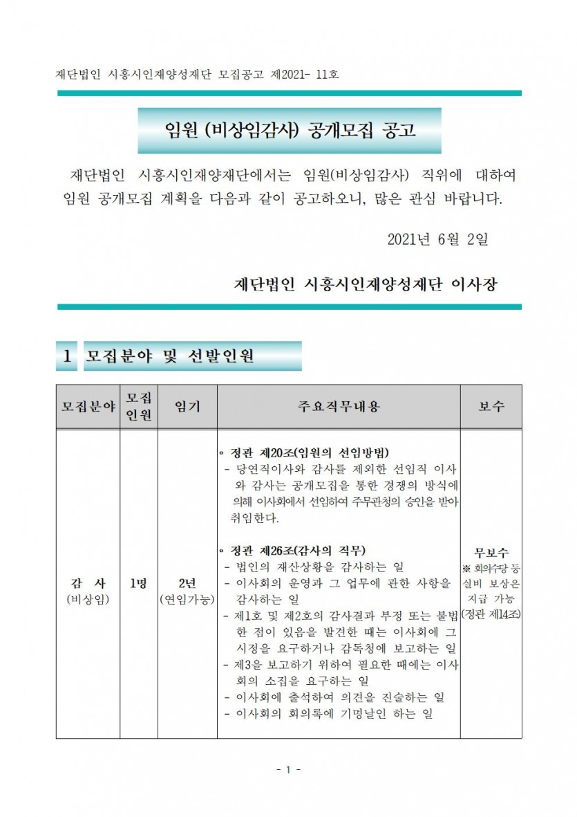 시흥시인재양성재단 임원(비상임감사) 공개모집 공고.hwp