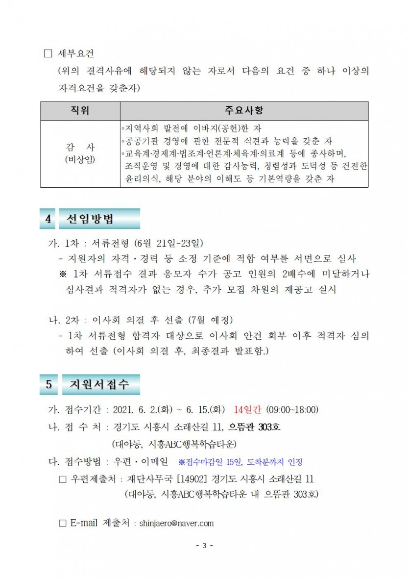 [공고] 재단 임원(비상임감사) 공개모집 공고