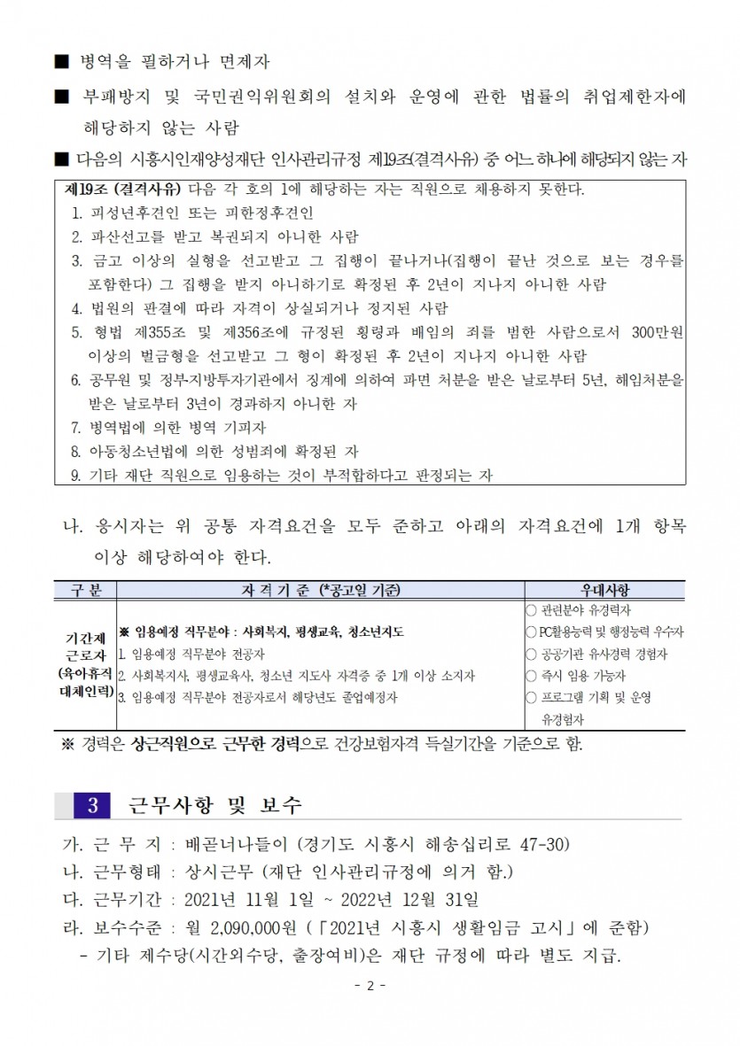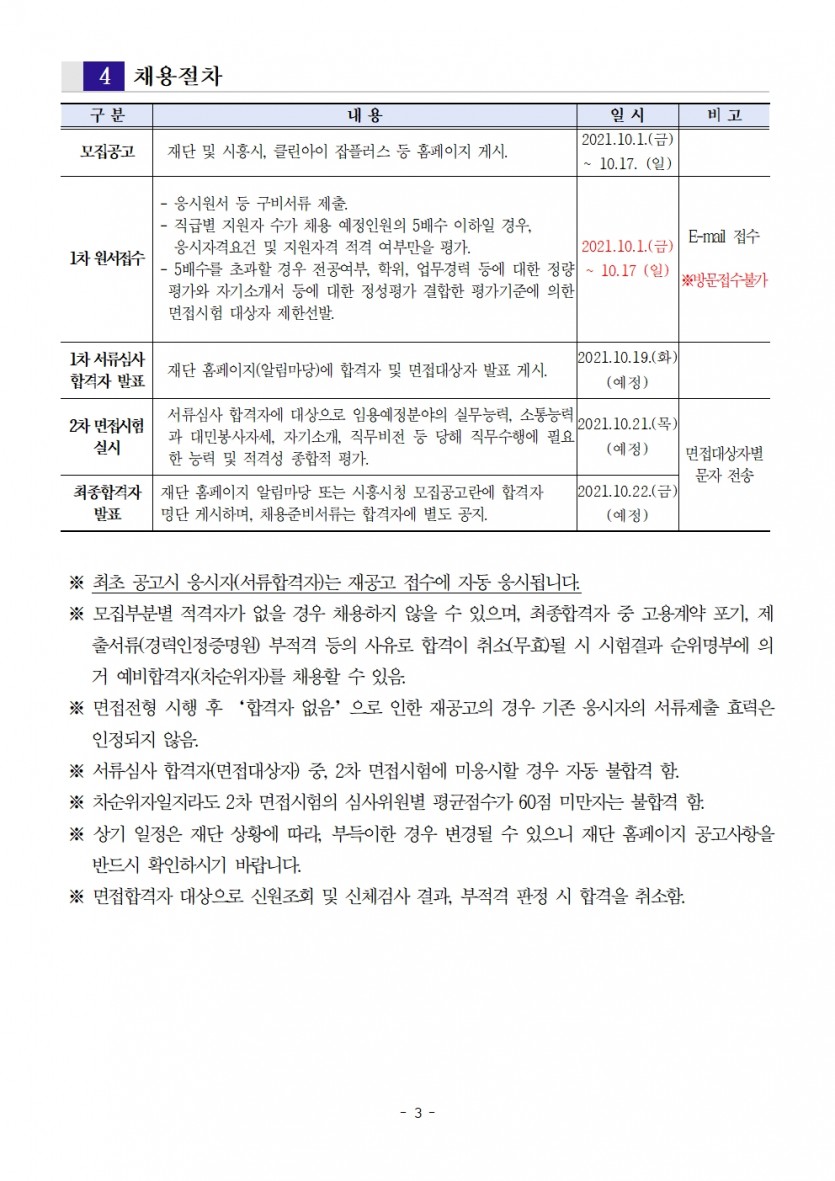 [채용] 2021년 육아휴직대체인력 직원채용 (재)공고