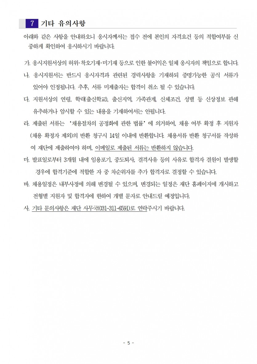 2021년 제4회 직원 공개채용 최종합격자 공고
