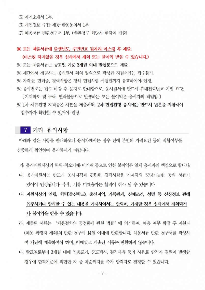 2022년 제1회 직원 공개채용 최종합격자 공고