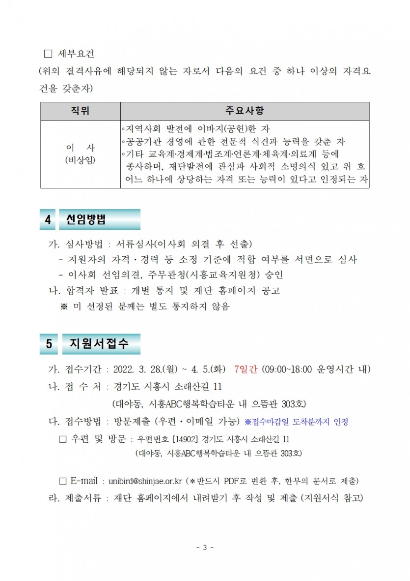 [공고] 재단법인 시흥시인재양성재단 임원(비상임이사) 공개모집