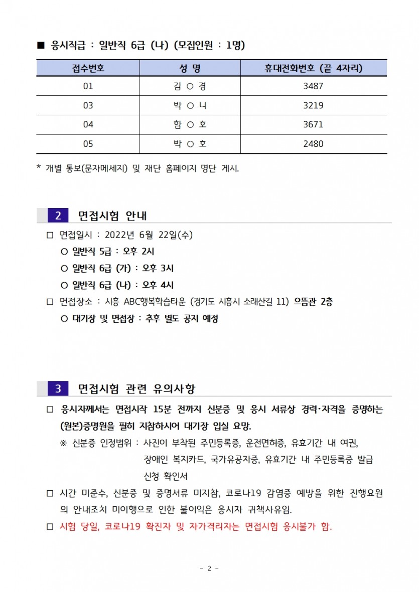 [채용] 2022년 제3회 직원 공개채용 서류심사 합격자 및 면접시험 대상자 공고