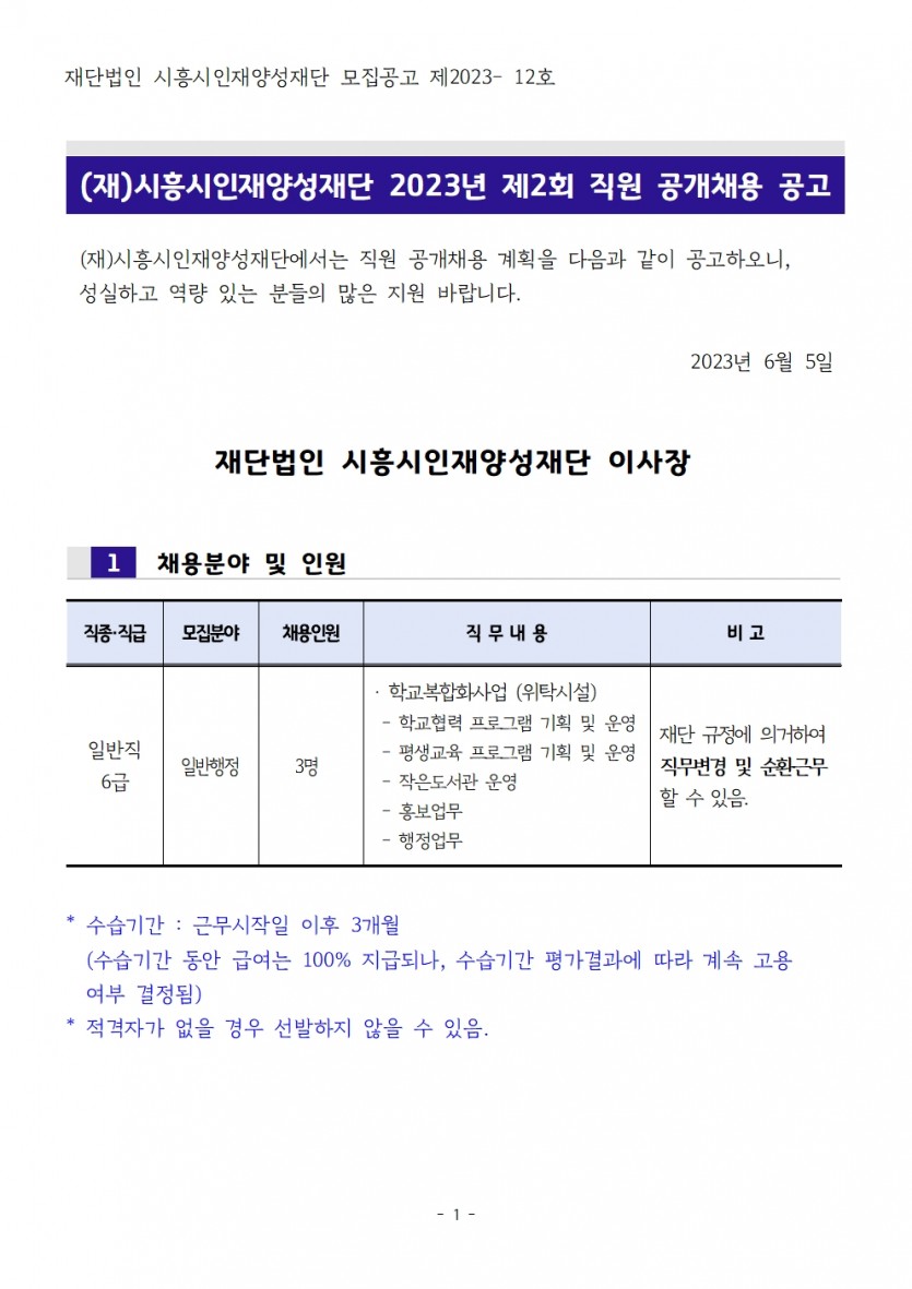 (재)시흥시인재양성재단 제2회 직원 공개채용 공고문.pdf