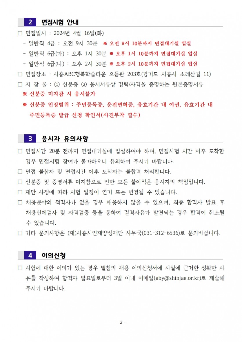 2024년 제2회 직원공개채용 최종합격자 공고