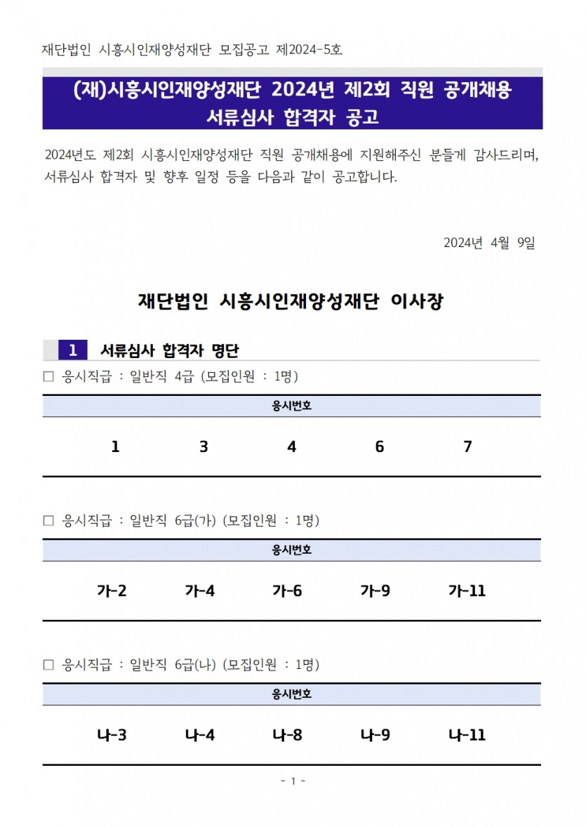[채용] 2024년 제2회 직원 공개채용 서류심사 합격자 공고