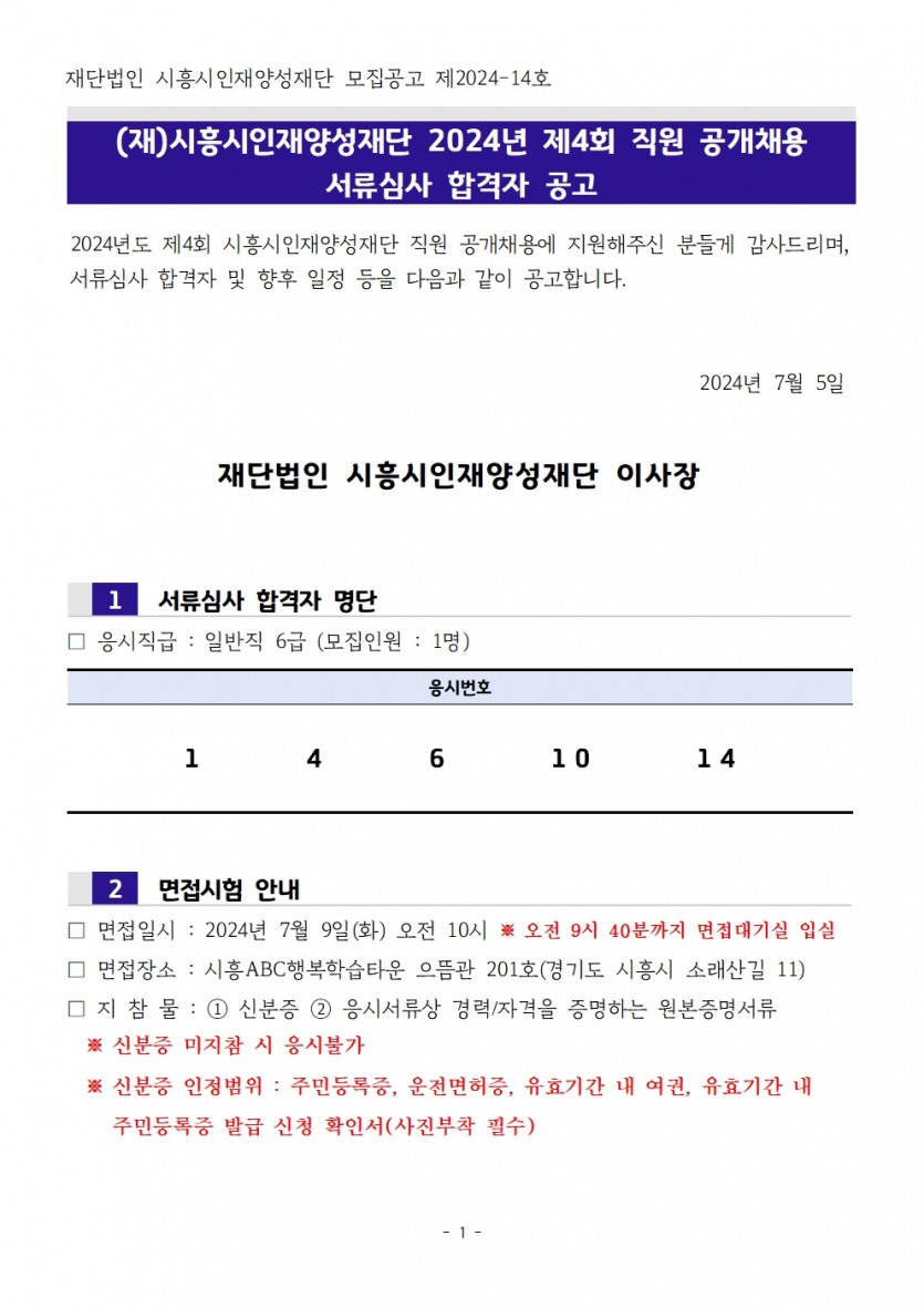 [채용] 2024년 제4회 직원 공개채용 서류심사 합격자 공고