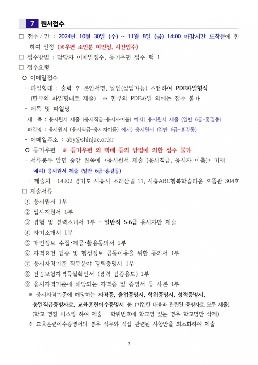 2024년 제5회 직원 공개채용 서류심사 합격자 공고