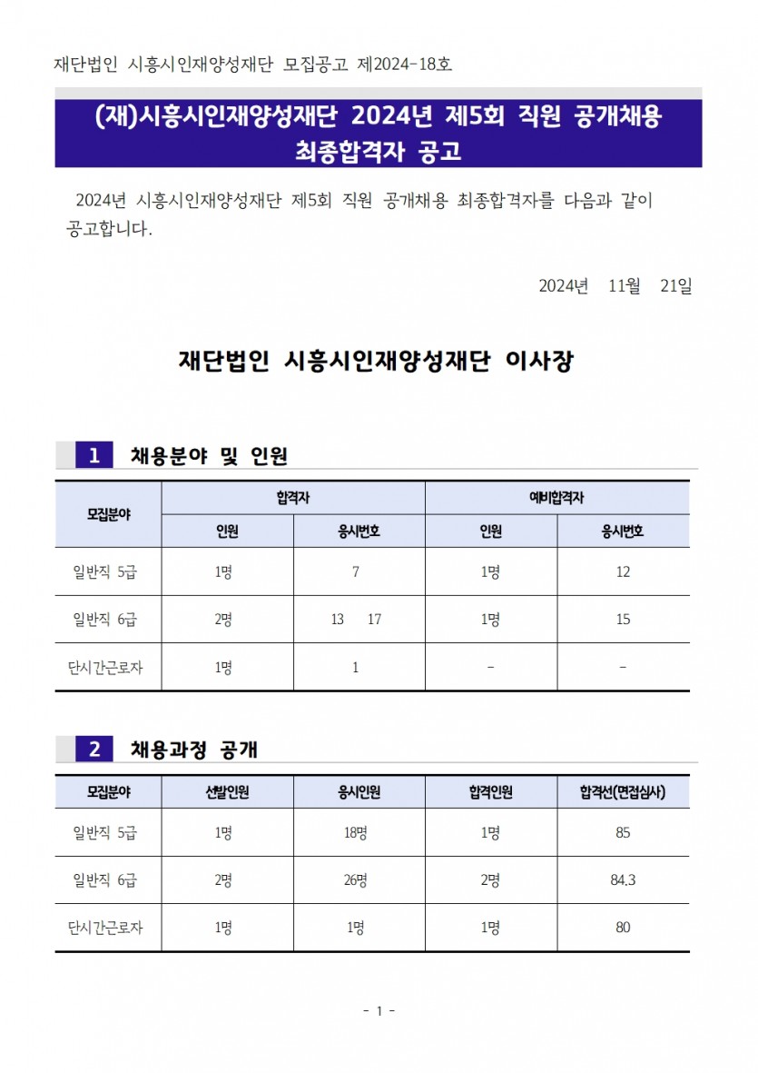 [채용] 2024년 제5회 직원 공개채용 최종합격자 공고