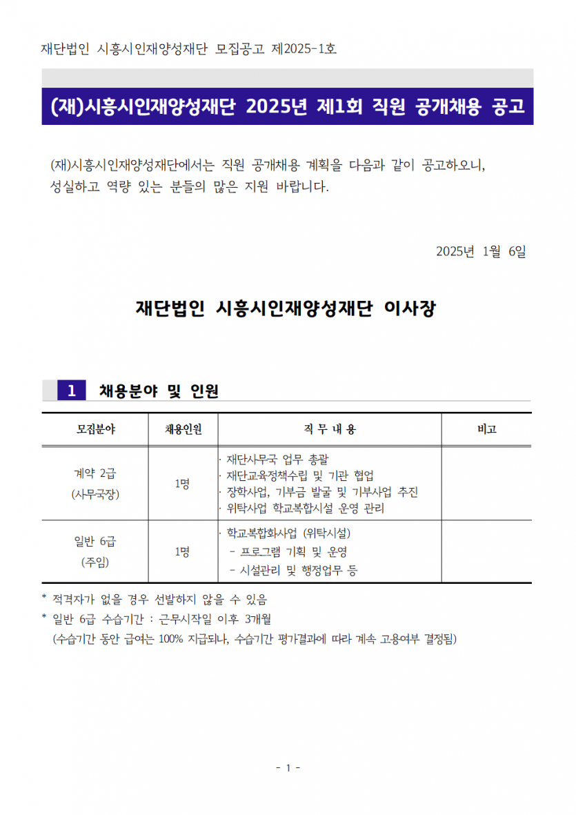 2025년 제1회 직원 공개채용 서류심사 합격자 공고