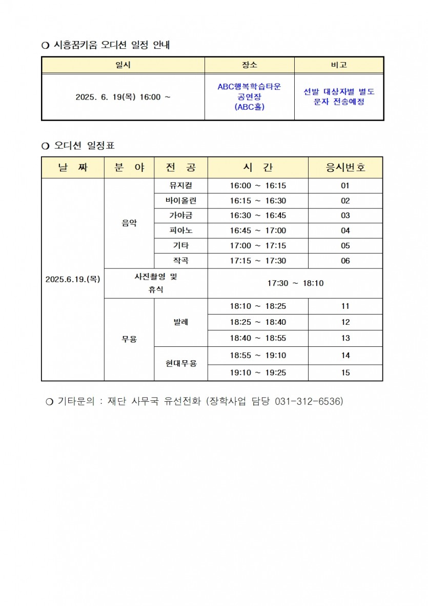 2025년 시흥꿈키움 장학생 선발심사 오디션일정표.hwp