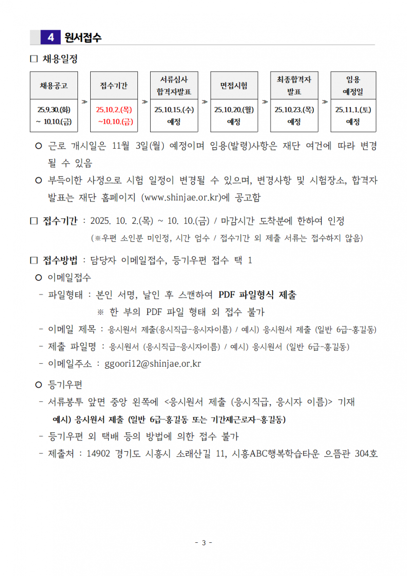 2025년 제3회 직원 공개채용 서류심사 합격자 공고