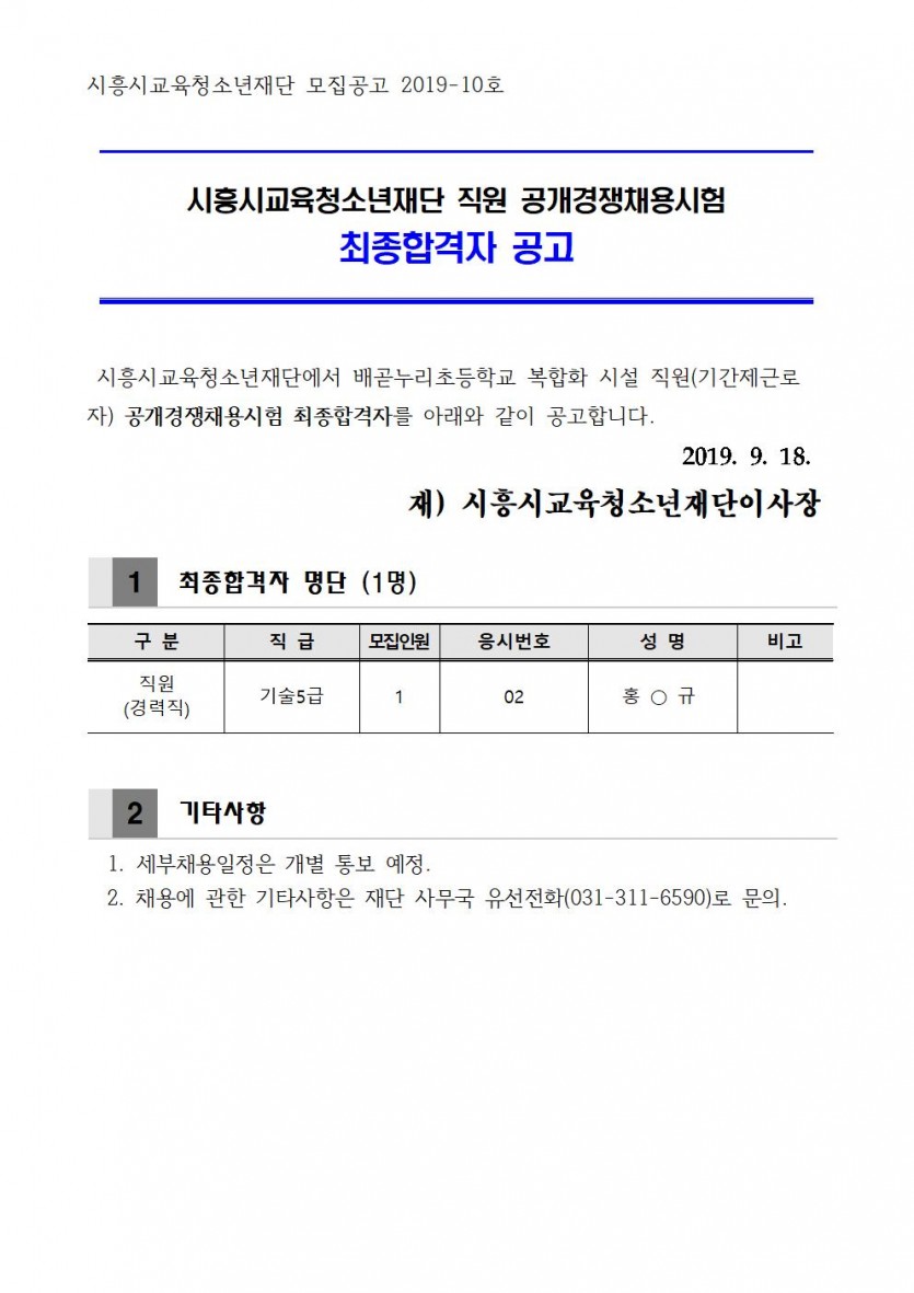 시흥시교육청소년재단 모집공고 제2019-10호. 직원(기간제) 공개채용시험 최종합격자 공고.hwp
