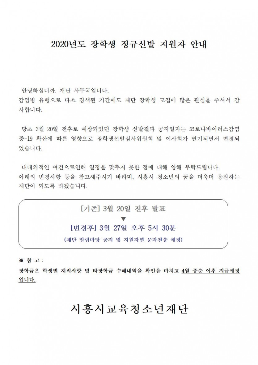 [공지] 2020년도 장학생 정규선발 공지일정 변경 안내