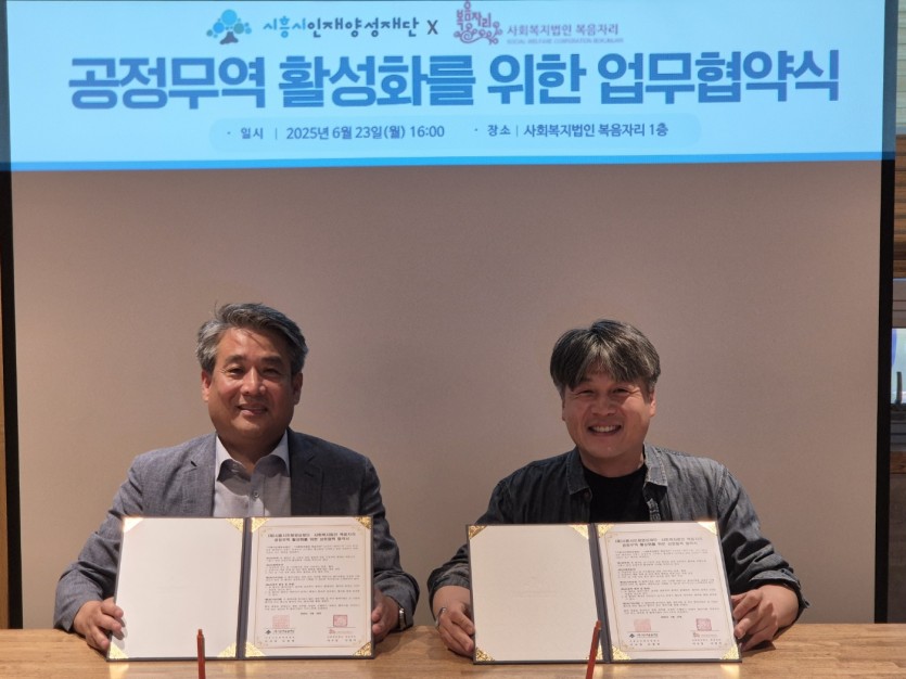 (재)시흥시인재양성재단(이사장 임병택)은 지난 23일 사회복지법인 복음자리와 공정무역 활성화 및 ESG 경영 실천을 위한 업무협약을 체결했다.