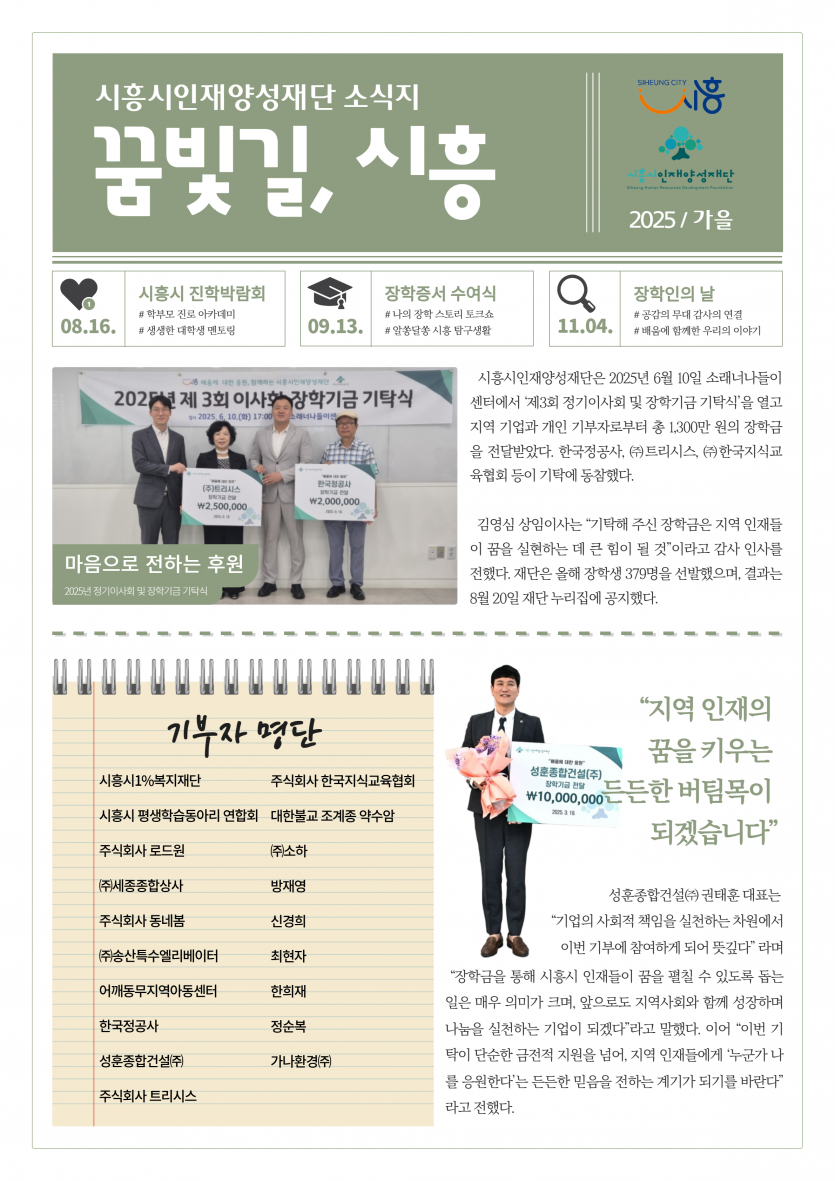 [기타] 시흥시인재양성재단 소식지 꿈빛길, 시흥