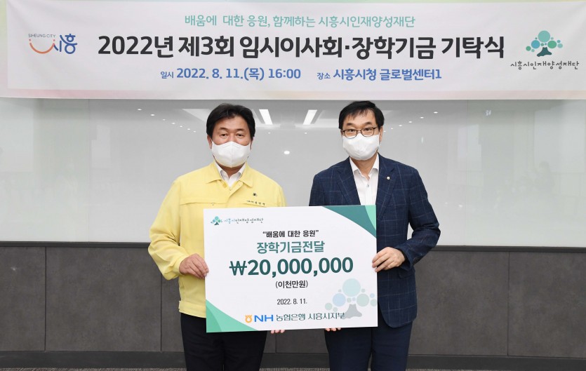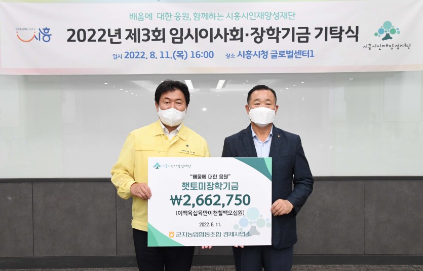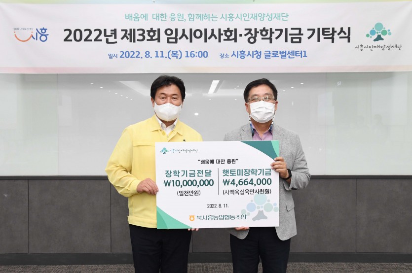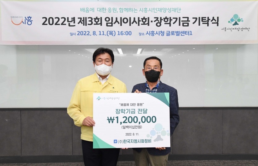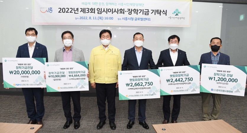 2022년 8월 11일 (목) 시흥시청 글로벌센터1에서 시흥시인재양성재단 2022년 제3회 이사회와 장학기금 기탁식이 진행되었습니다.