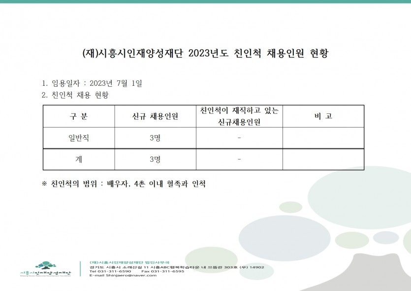[친인척 채용인원 공개] 2023년 신규채용 관련 임직원 친인척 현황 공시(7월)