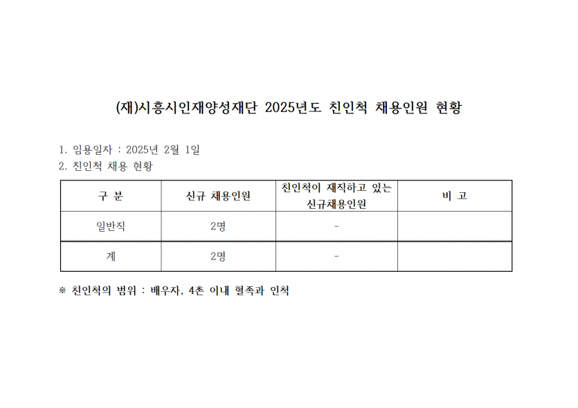 [친인척 채용인원 공개] 2025년 신규채용 관련 임직원 친인척 현황 공시(2월)