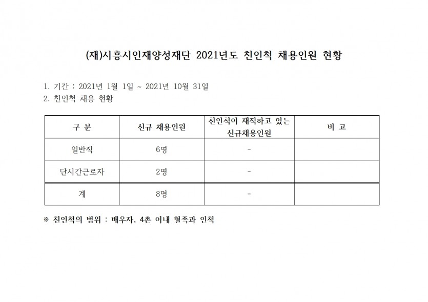 [친인척 채용인원 공개] 2021년도 신규채용 관련 임직원 친인척 현황 공시