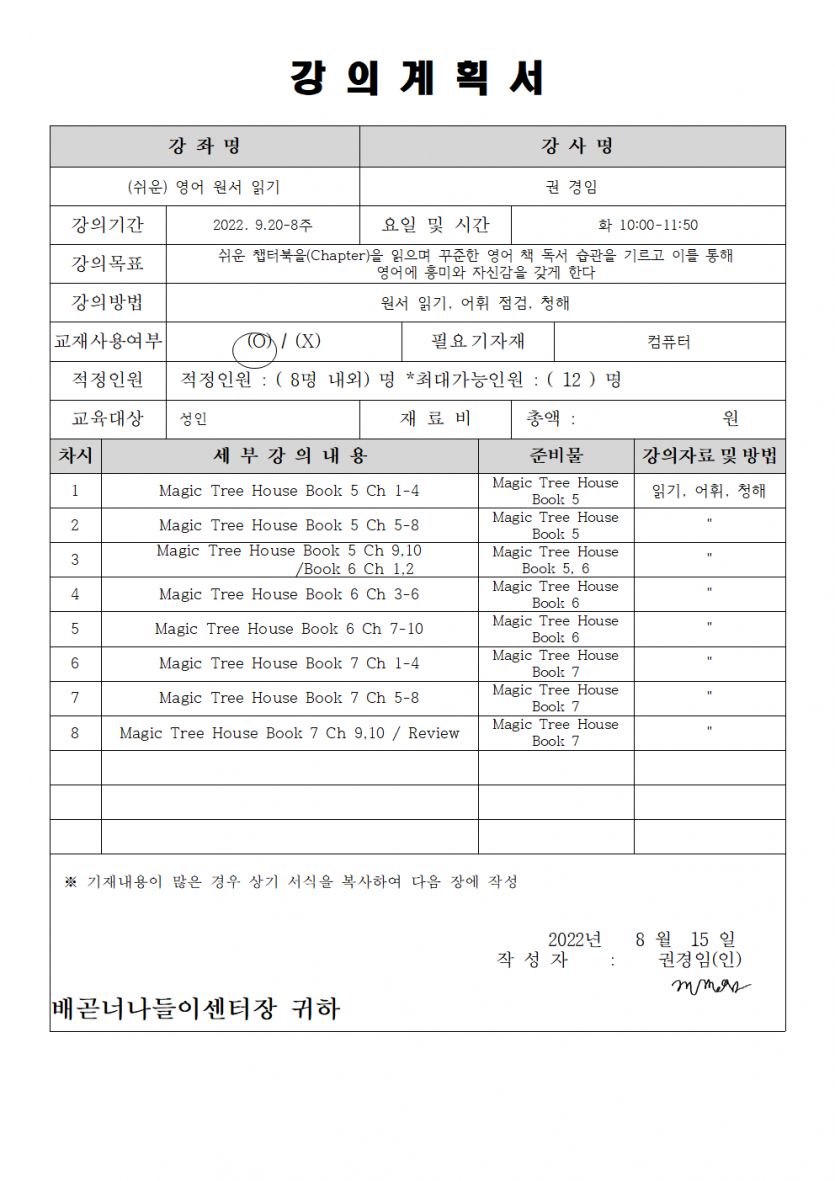 | 강좌명 | 4분기 교육프로그램 - 영어원서 쉽게 읽기 | 접수방법 | 온라인 신청(선착순 접수) |