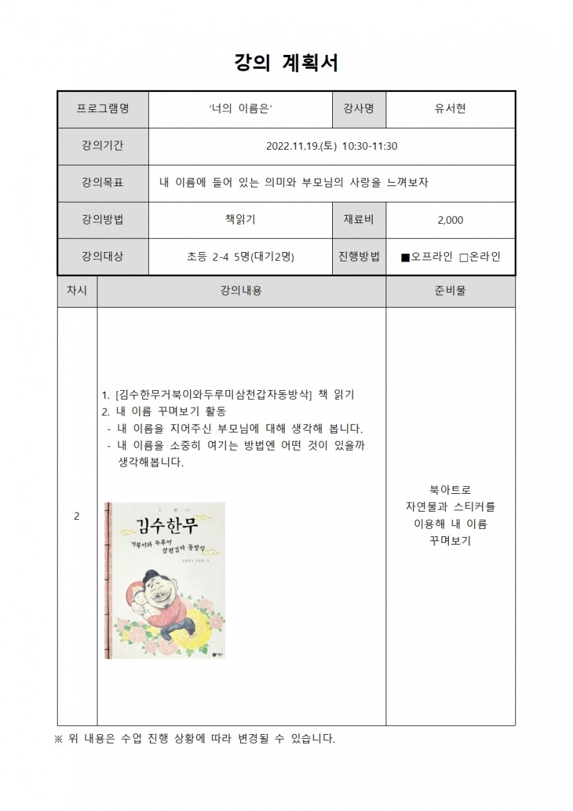 11월 북나들이 프로그램 - 너의 이름은(9-11세)