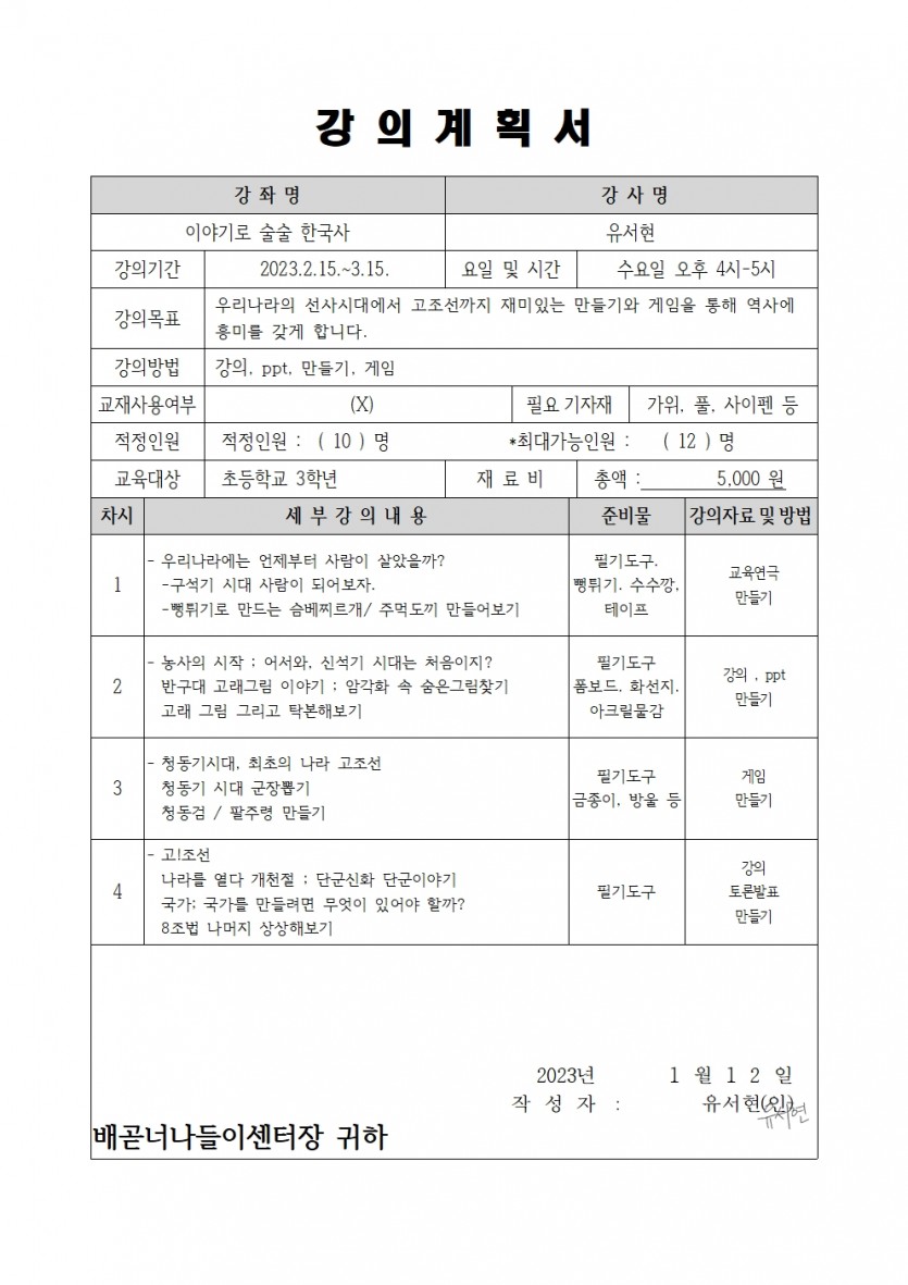 강좌명 2023년 1분기 평생교육프로그램 - 이야기로 술술 한국사 접수방법 온라인 접수(선착순)