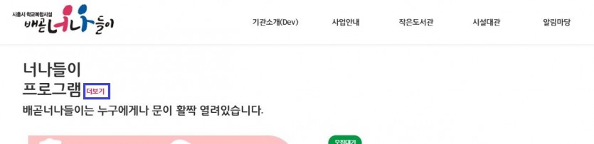 ① 신청 당일 홈페이지 내 너나들이 프로그램 [더보기] 클릭
