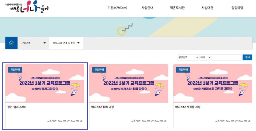 | 강좌명 | 2022년 1분기 교육프로그램 신청 안내 | 접수방법 | 온라인 신청(선착순) |