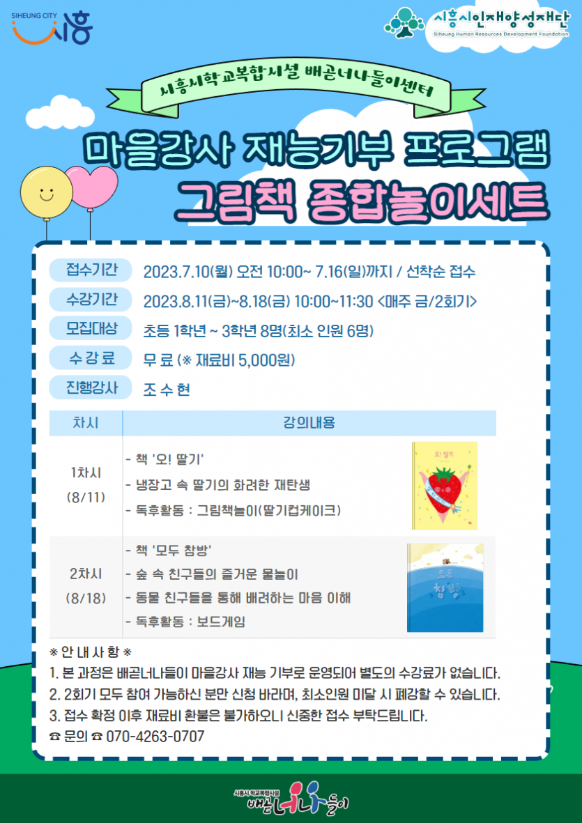 방학특강) 마을강사 재능기부 프로그램 - 그림책 종합놀이세트