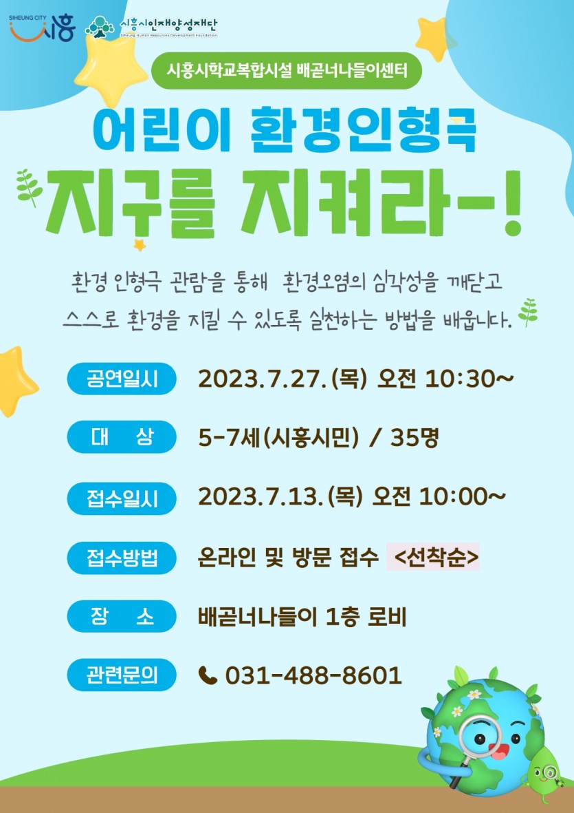강좌명 3분기 문화공연 - 어린이 환경인형극 접수 안내 접수방법 온라인 접수(선착순)