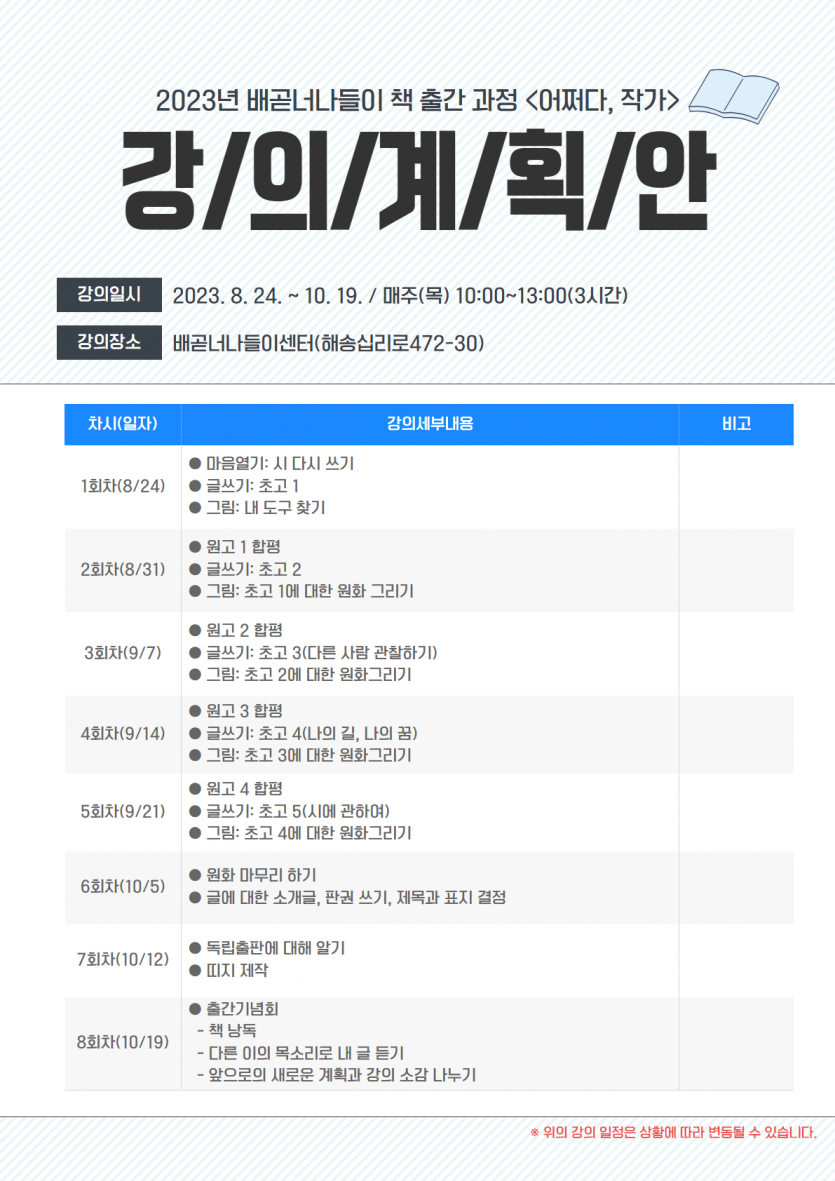 작은도서관 하반기 책 출간 과정 - 어쩌다, 작가