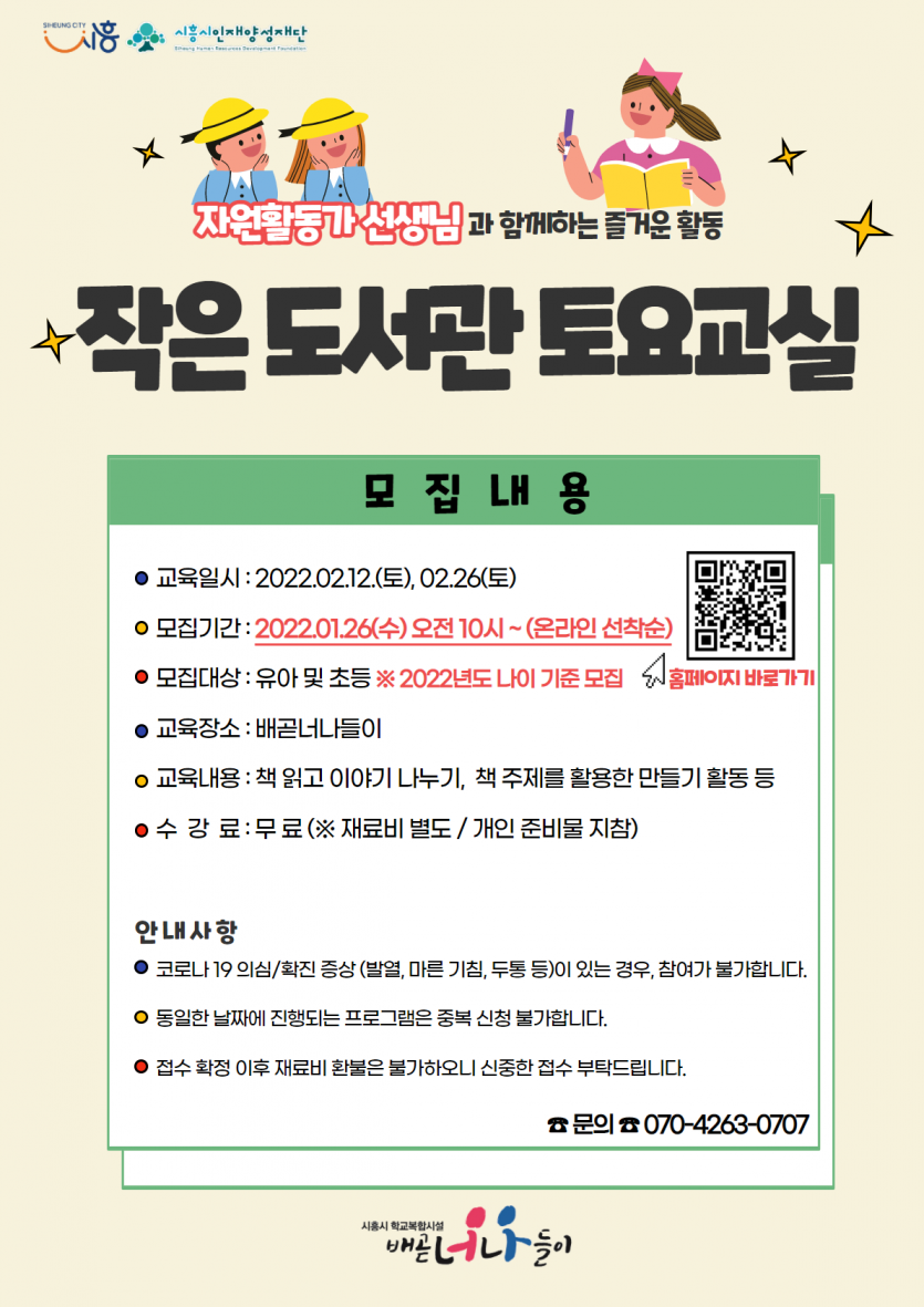 작은도서관 토요교실 - 책이랑 요리랑(8-9세)