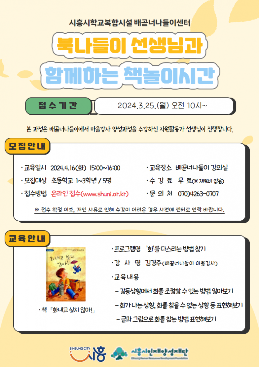 북나들이선생님과 함께하는 책놀이시간-화를 다스리는 방법 찾기