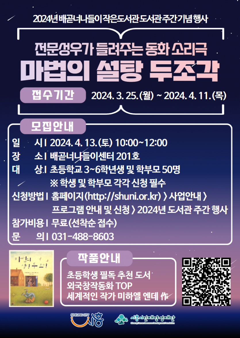 2024년 작은도서관 도서관 주간 행사(마법의 설탕 두조각 소리극) 신청 안내