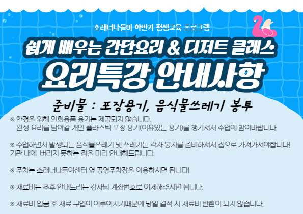 | 강좌명 | 2024년 하반기 평생교육 요리 특강 프로그램 - 고구마치즈빵 | 접수방법 | 온라인접수(선착순) |