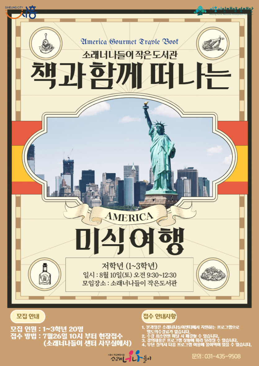 | 강좌명 | 2024년 하반기 독서진흥프로그램 책과 함께 떠나는 미식여행 (저학년) | 접수방법 | 소래너나들이 사무실 현장 접수(선착순) |