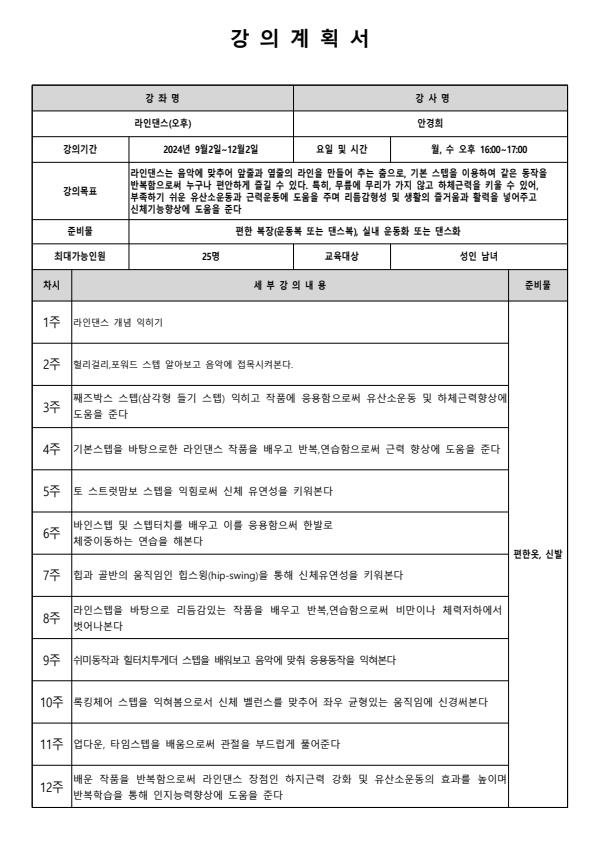 2024년 하반기 평생교육 프로그램 - 라인댄스(오후)
