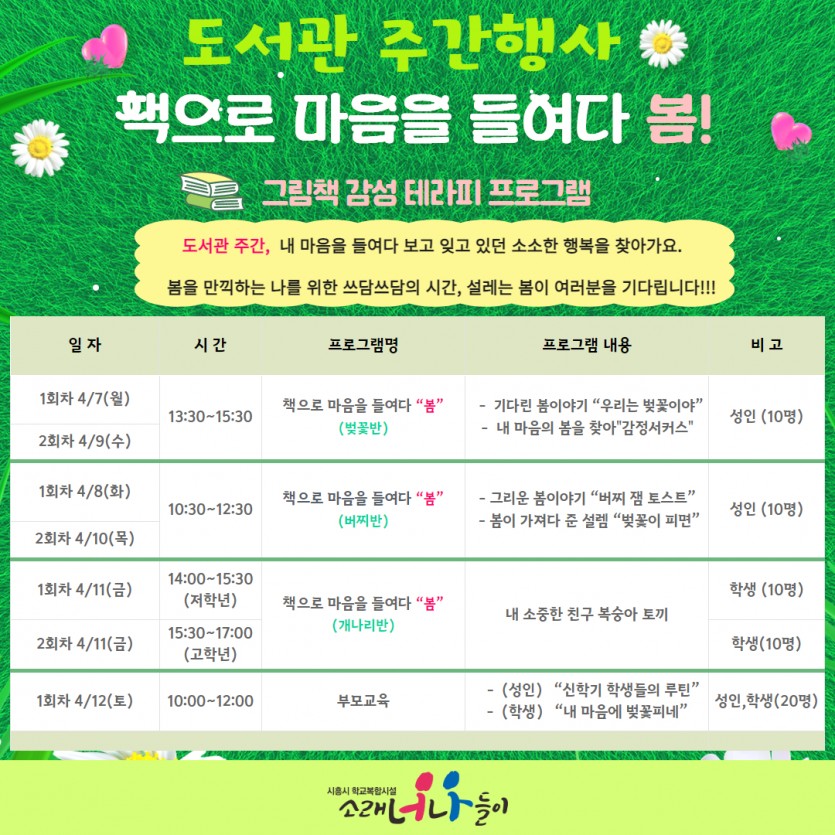 ★소래 도서관 주간★ (월,수_성인)「책으로 마음을 들여다 봄!」- 벚꽃반