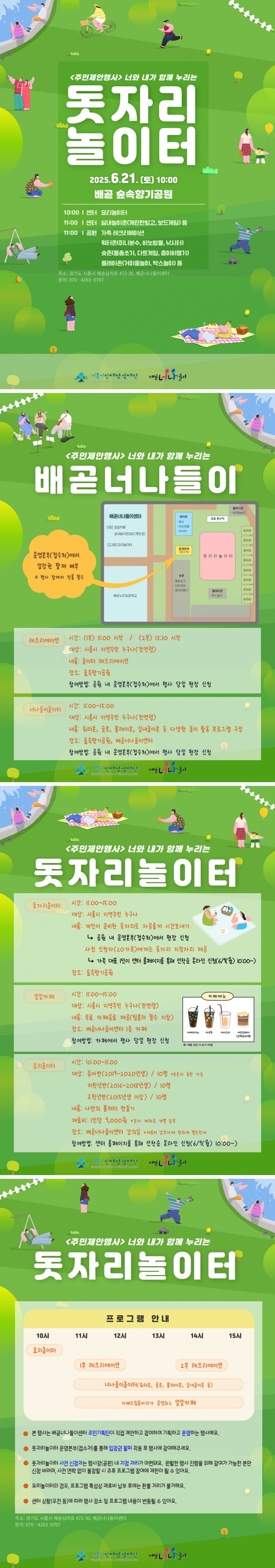 2025년 제1회 배곧너나들이센터 주민제안행사 「너와 내가 함께 누리는 돗자리놀이터」 안내입니다.