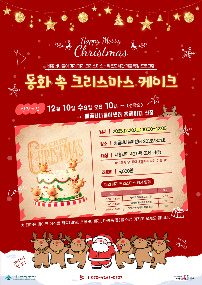 강좌명 [작은도서관 겨울특강] 동화 속 크리스마스 케이크(B반) 접수방법 온라인 접수(선착순)