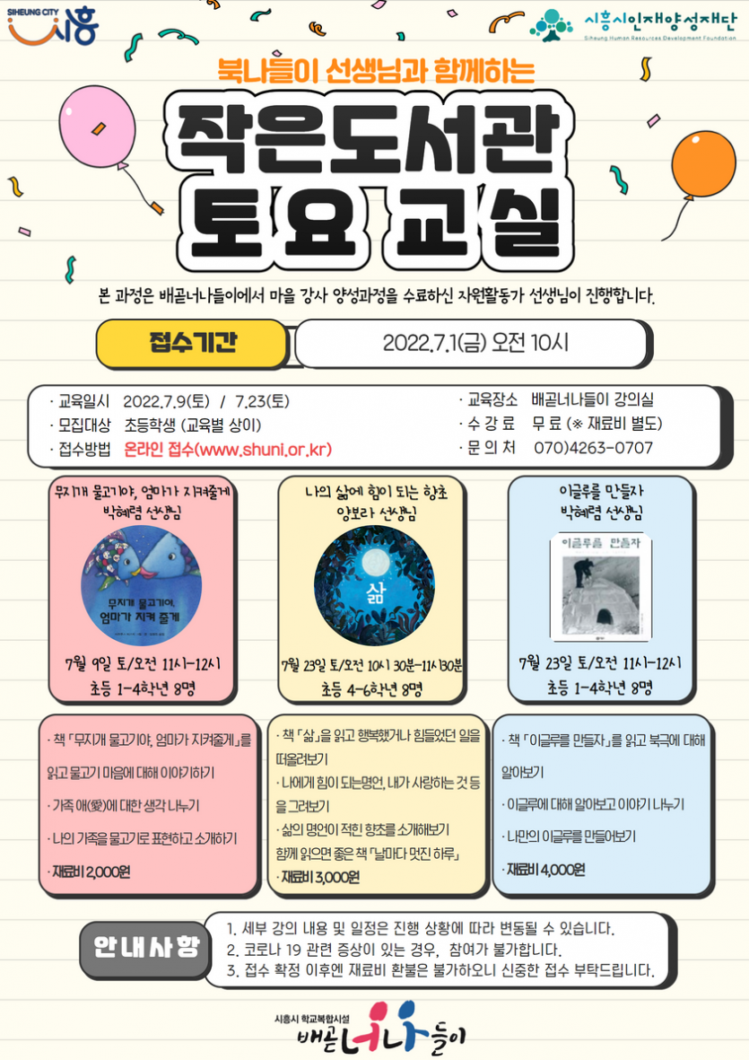 7월 작은도서관 토요교실 프로그램 신청 안내
